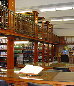 The State Law Library of Kentucky has a long tradition of meeting the legal research and reference needs of Kentucky judges, state legislators, public officials and citizens. The library offers access to electronic legal databases and a large collection of legal print resources and historic publications. The library is located on the second floor of the state Capitol in Frankfort. Changed little since its completion in 1909, the historic room features a glass mezzanine and original grain-painted steel shelving.