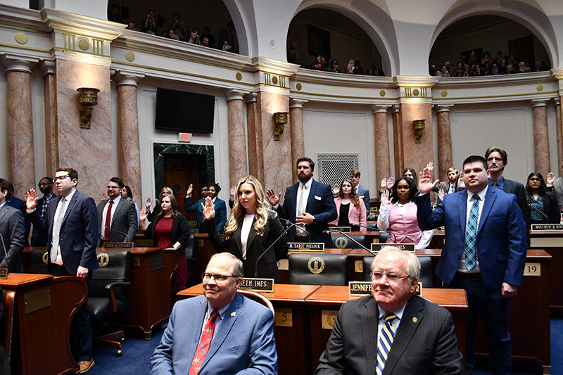 Law students are sworn in as new attorneys during the 2023 Supreme Court Law Day ceremony at the Capitol. (Photo: Jim Hoffmann, Administrative Office of the Courts)